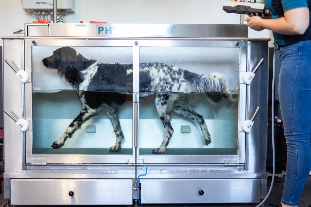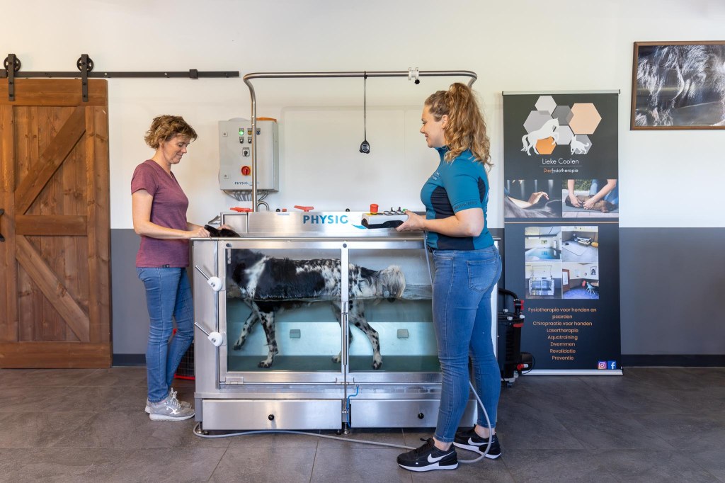 Bij sporthonden helpt aquatraining en hydrotherapie bij het verbeteren van de conditie, de souplesse en de spierkracht.